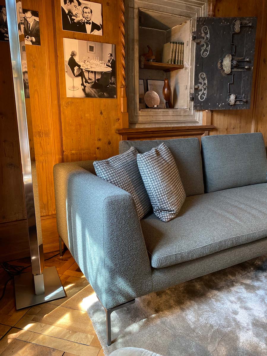 Als Ikone des zeitgenössischen Designs besticht das Sofa Charles durch seine Leichtigkeit, die durch das schlichte Design der Füße aus Aluminiumdruckguss in Form eines umgekehrten „L“ betont wird. Zusammen mit dem Design der Armlehne, des einzelnen Sitzkissens und der freien Rückenkissen bildet es das charakteristische Element der Linie. Die luftige Form und das schlichte Profil machen es, fast schon im Kontrast, räumlich äußerst edel und innovativ.